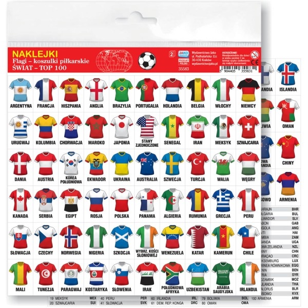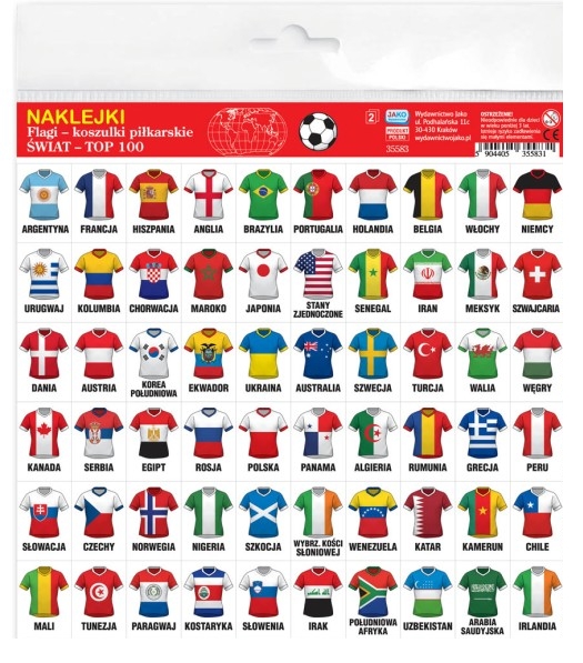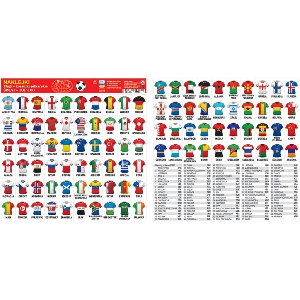 Opis: Naklejki. Flagi - koszulki piłkarskie. Świat - Top 100