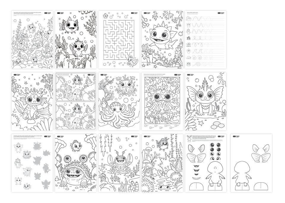 Ta wyjątkowa kolorowanka to nie tylko okazja do twórczej zabawy, ale także sposób na rozwijanie spostrzegawczości i naukę przez zabawę. Obok słodkich ilustracji do pokolorowania znajdziesz tu aż 8 stron z różnorodnymi zadaniami, takimi jak labirynty, znajdź różnicę czy nauka liczenia do 10.