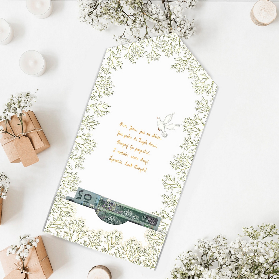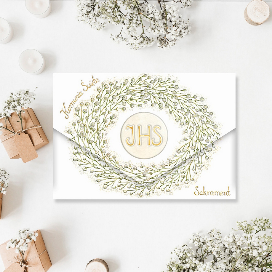 Szczegóły: Karnet A5 koperta Komunia. Gipsówka